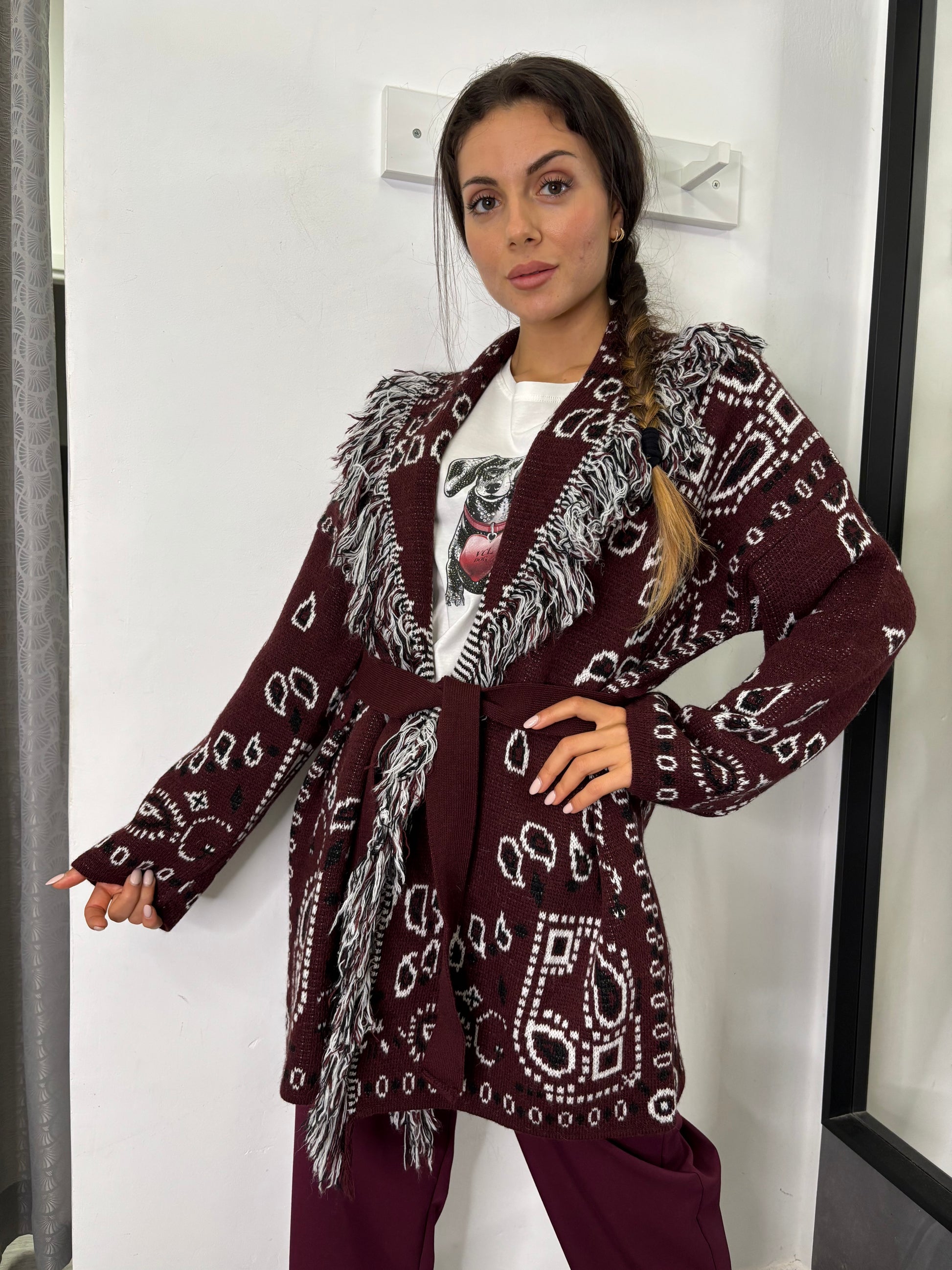 Cardigan Etnico Burgundi /Bianco/Nero Vicolo