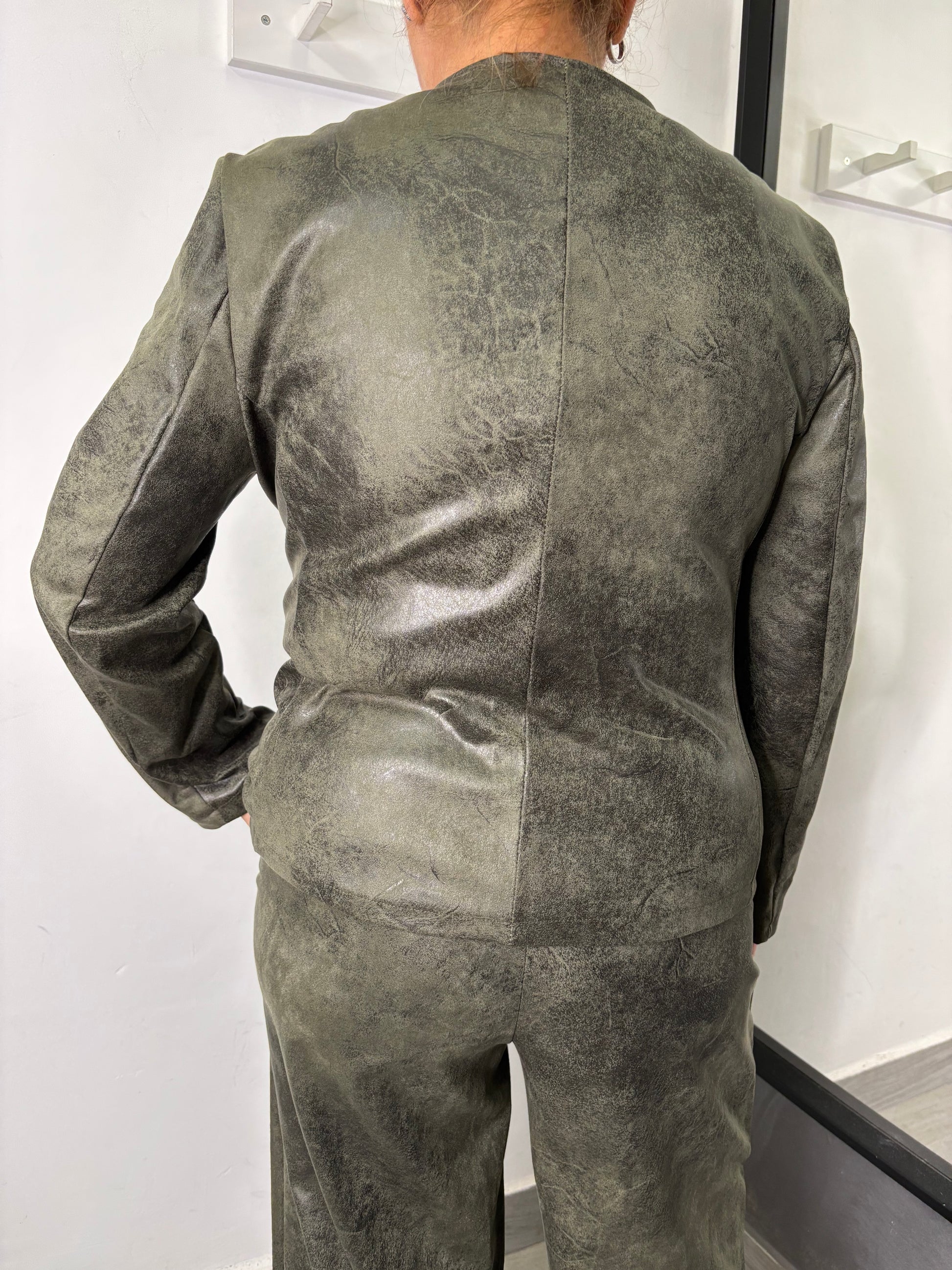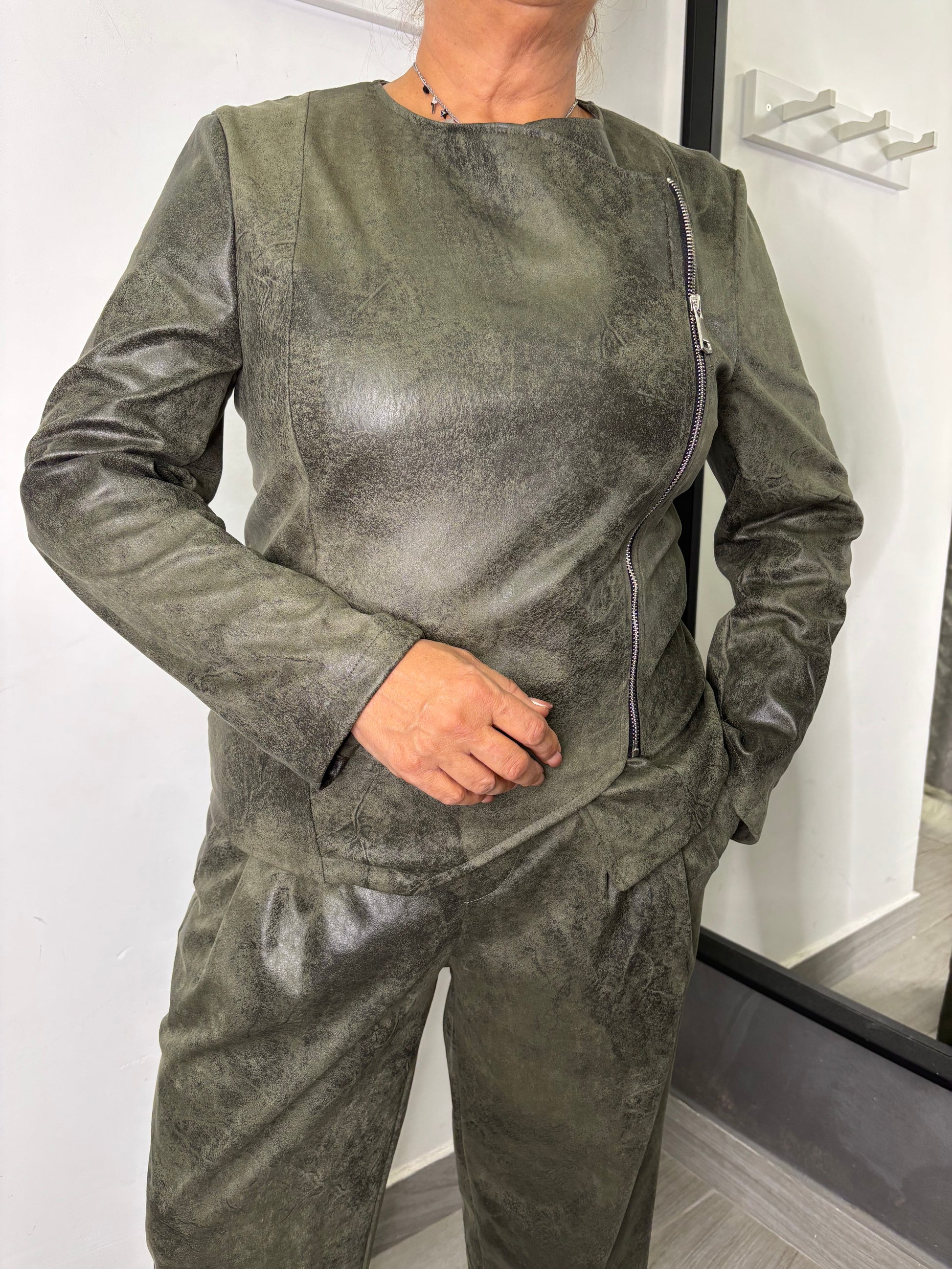 Giacca in tessuto Dainetto anticato, giro collo abbottonatura con cerniera laterale sulla parte sinistra. Taglia unica veste fino ad una 46.