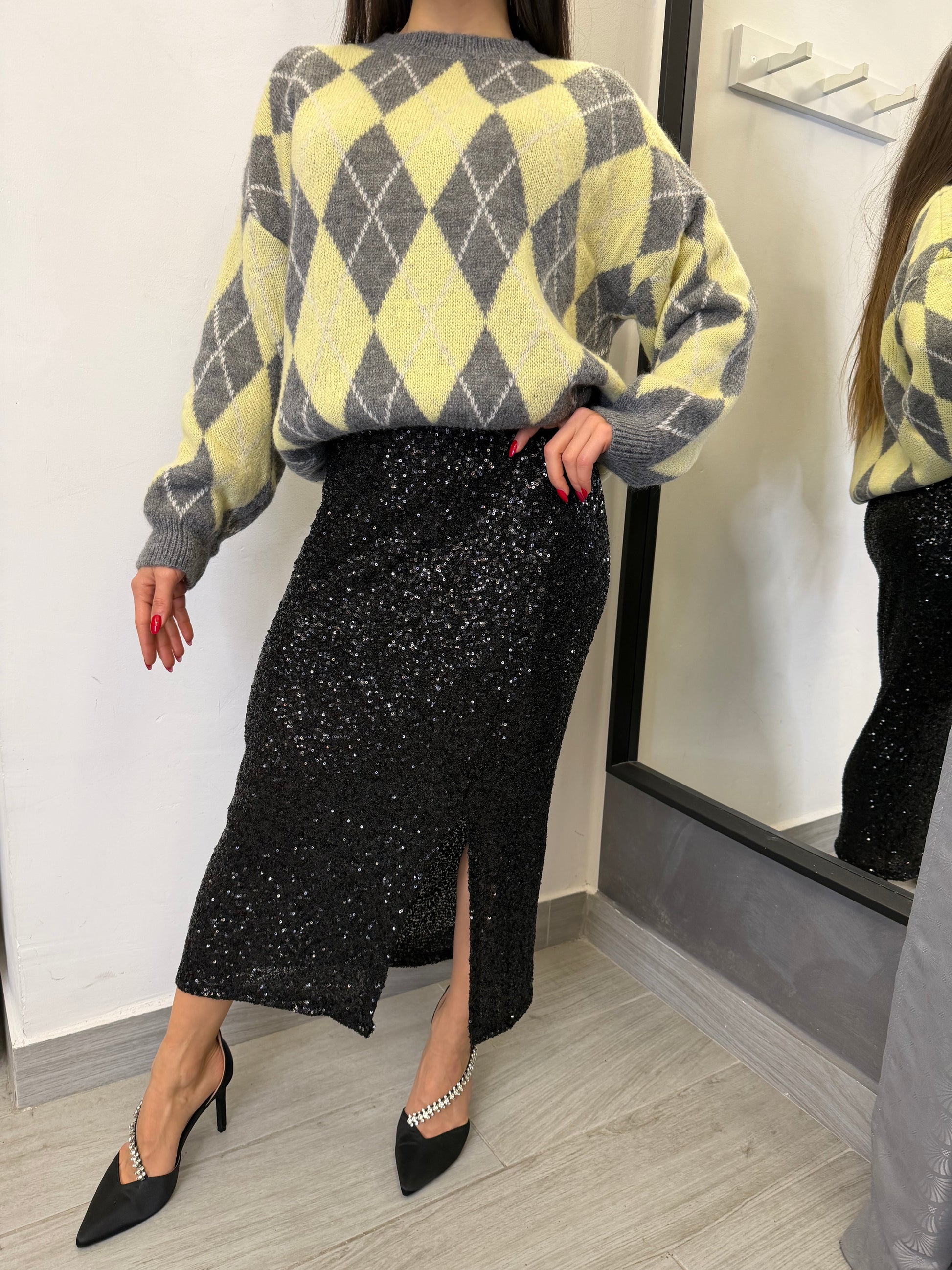 Gonna modello longette in paillettes e spacco dietro. Taglia unica veste fino ad una 44