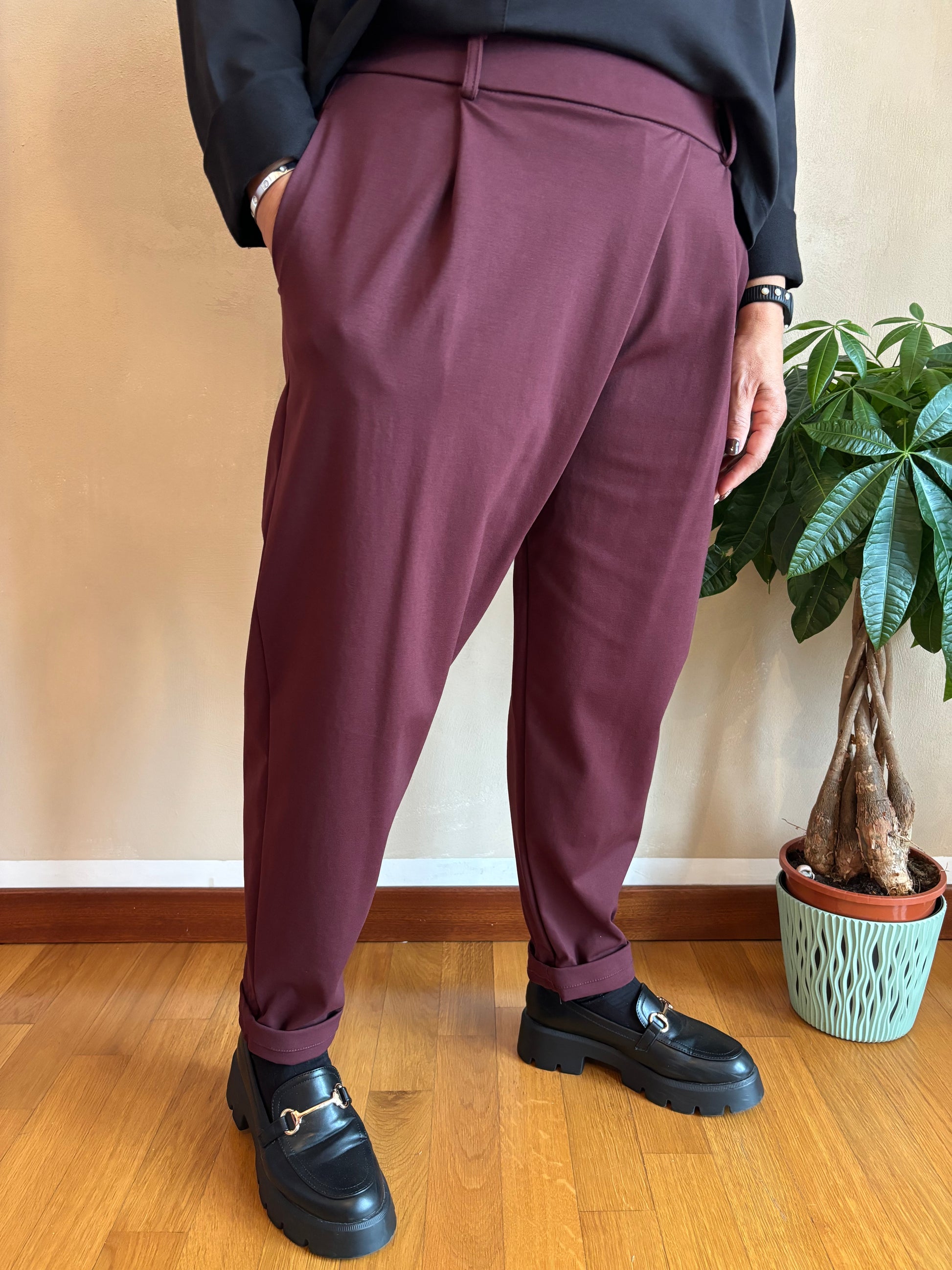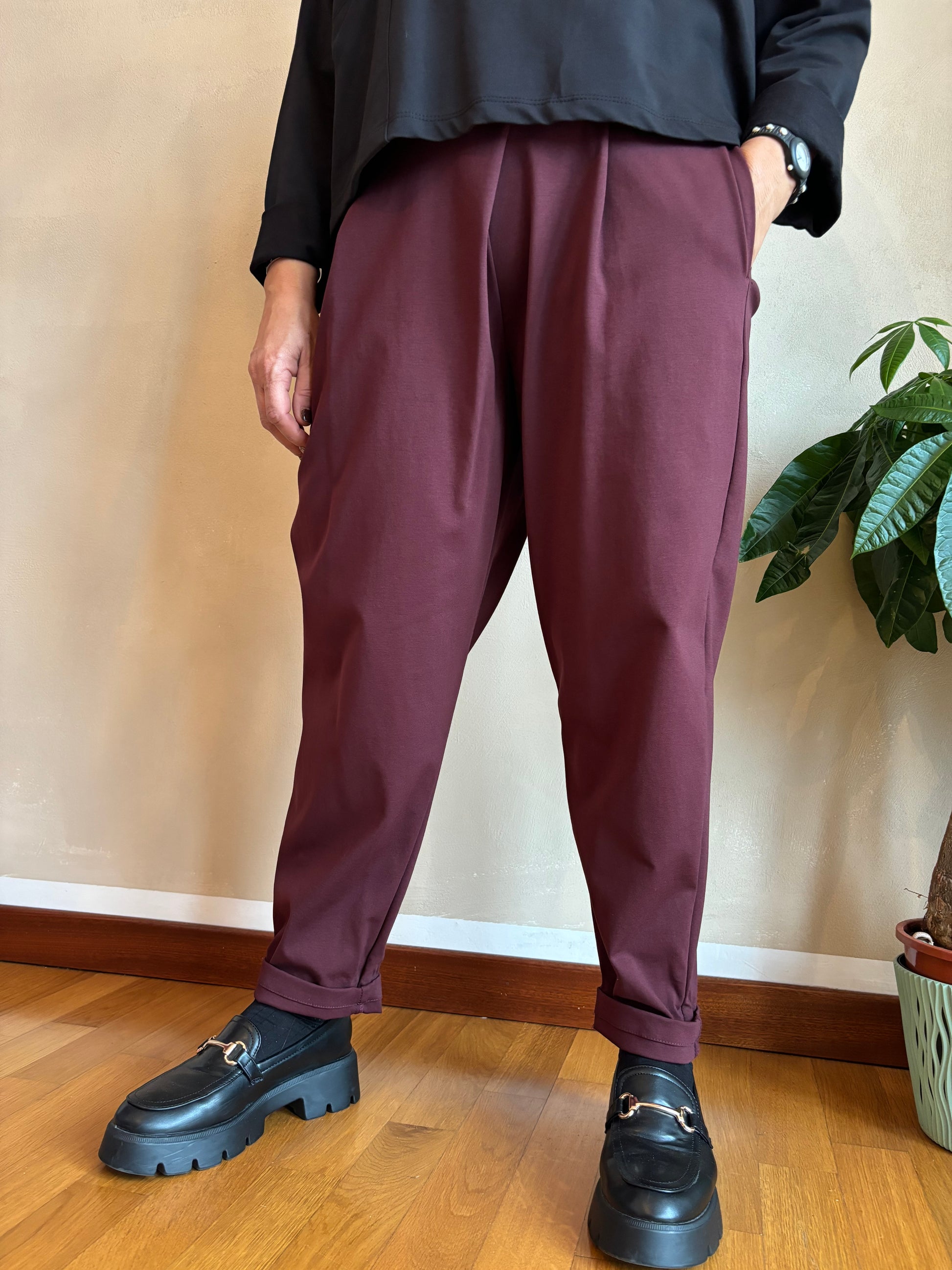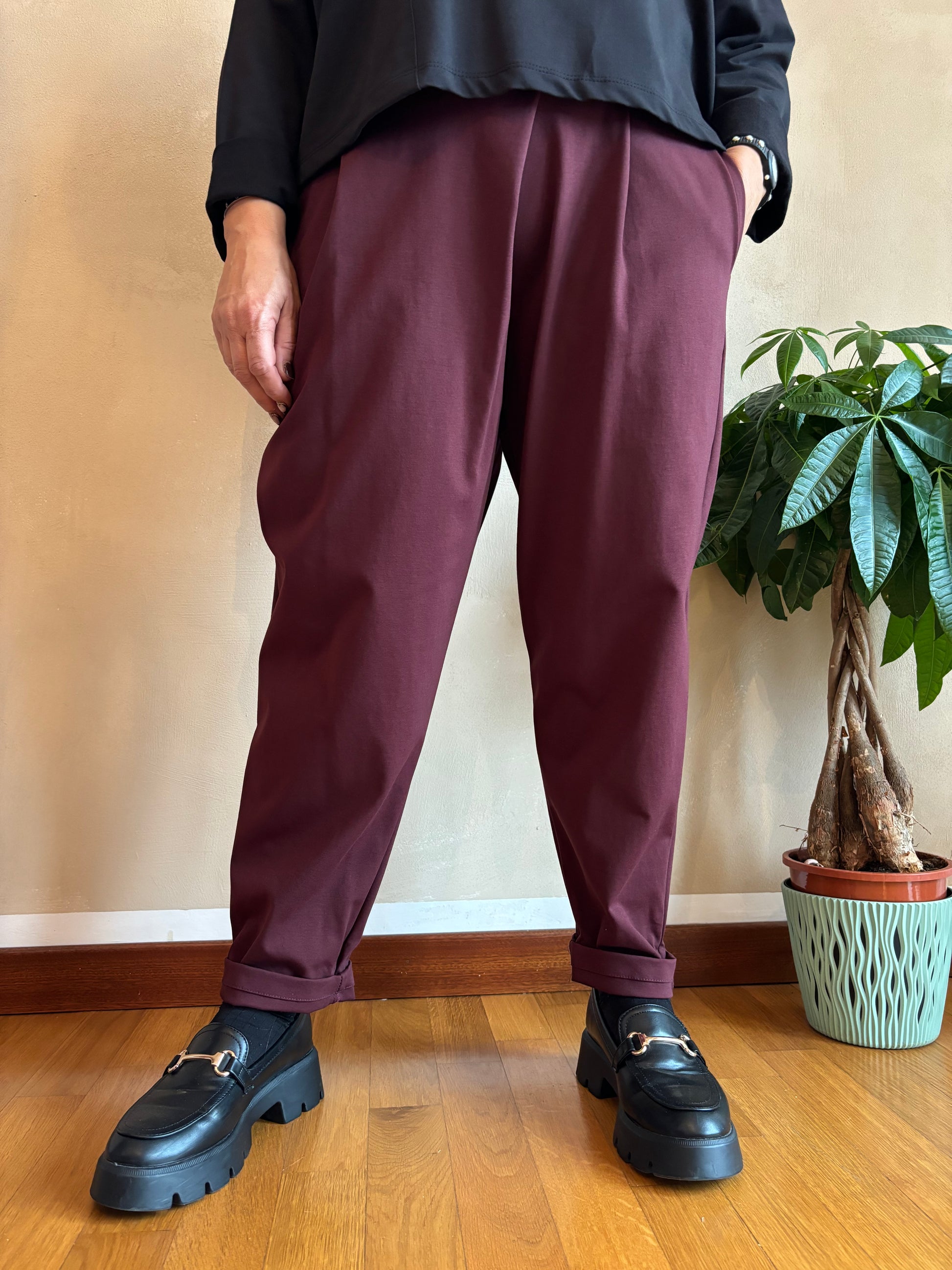 Pantalone in tessuto punto Milano, elastico in vita, tasche nei fianchi. Taglia unica veste fino ad una 46.