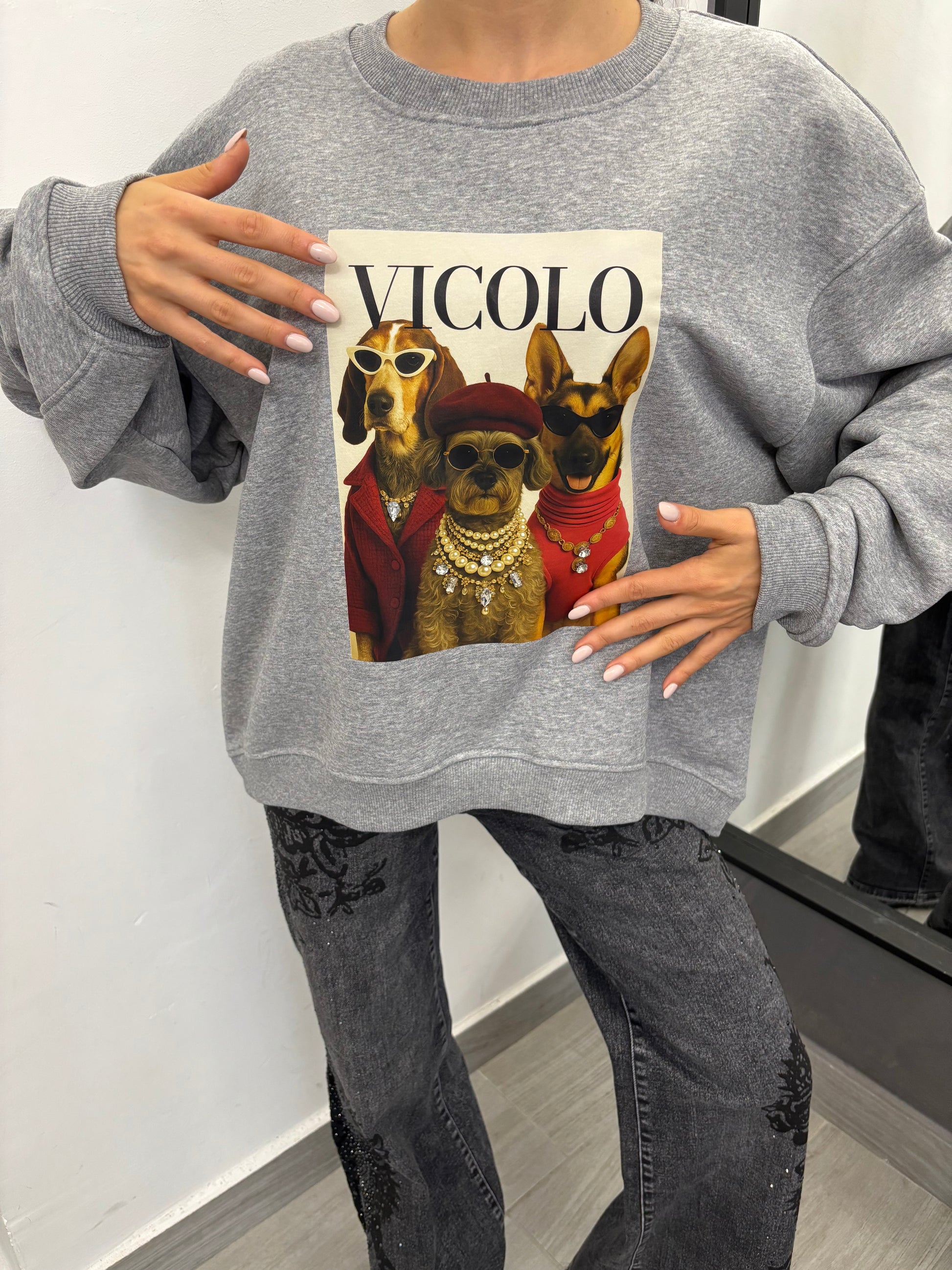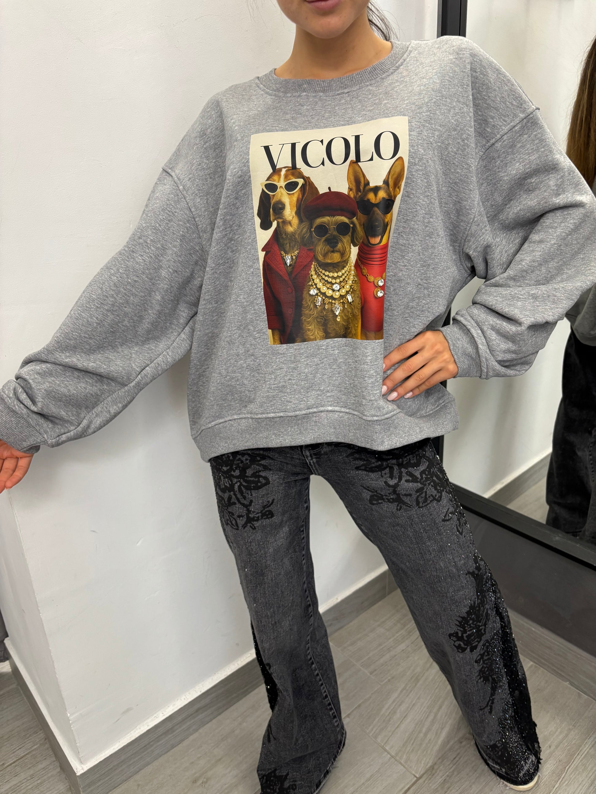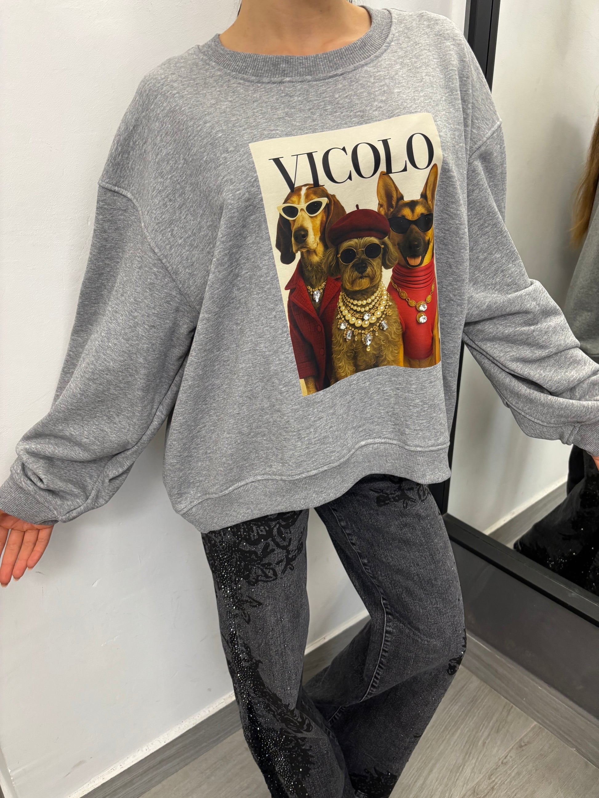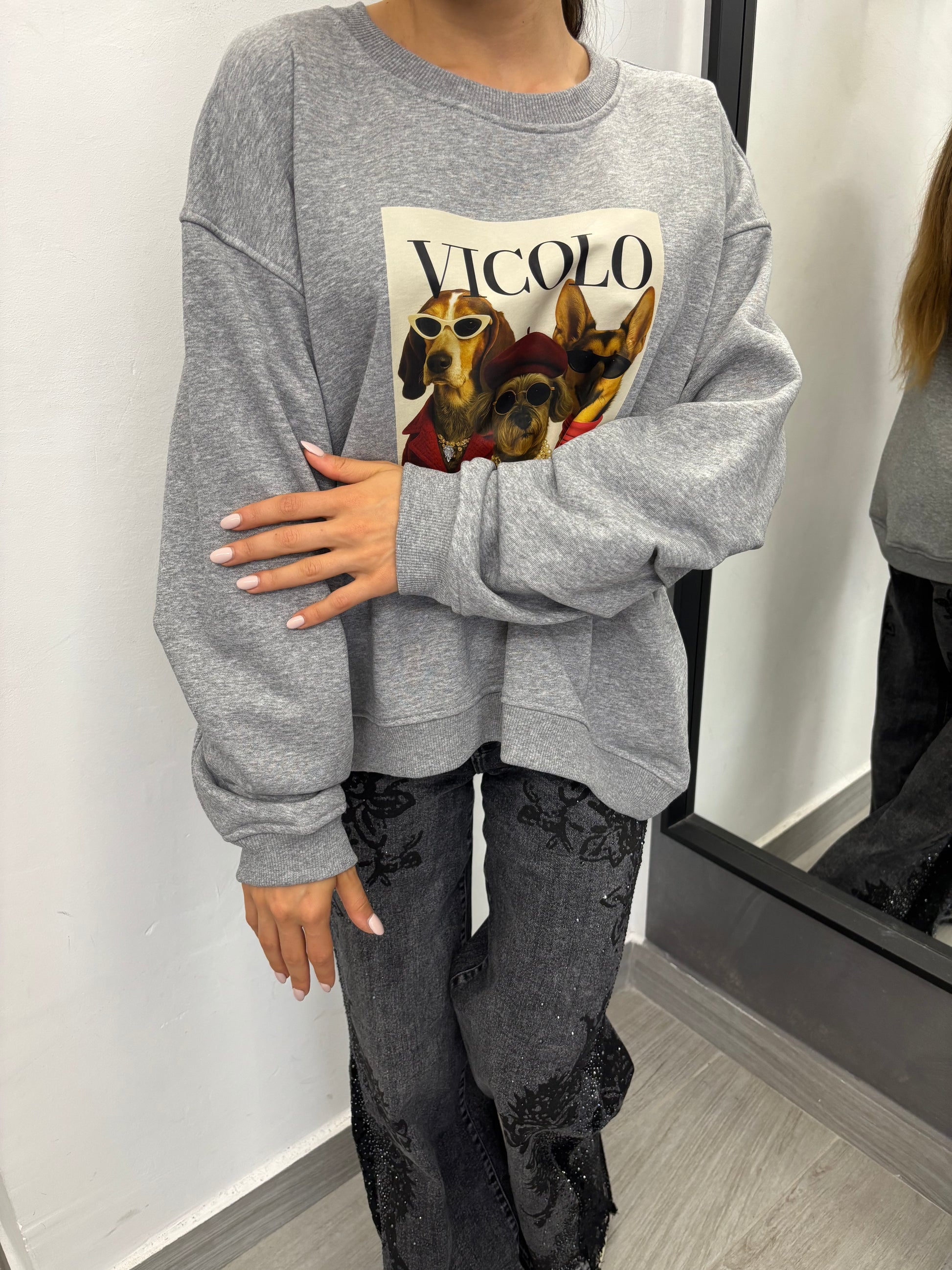 Felpa Trio Dogs Grigia Vicolo