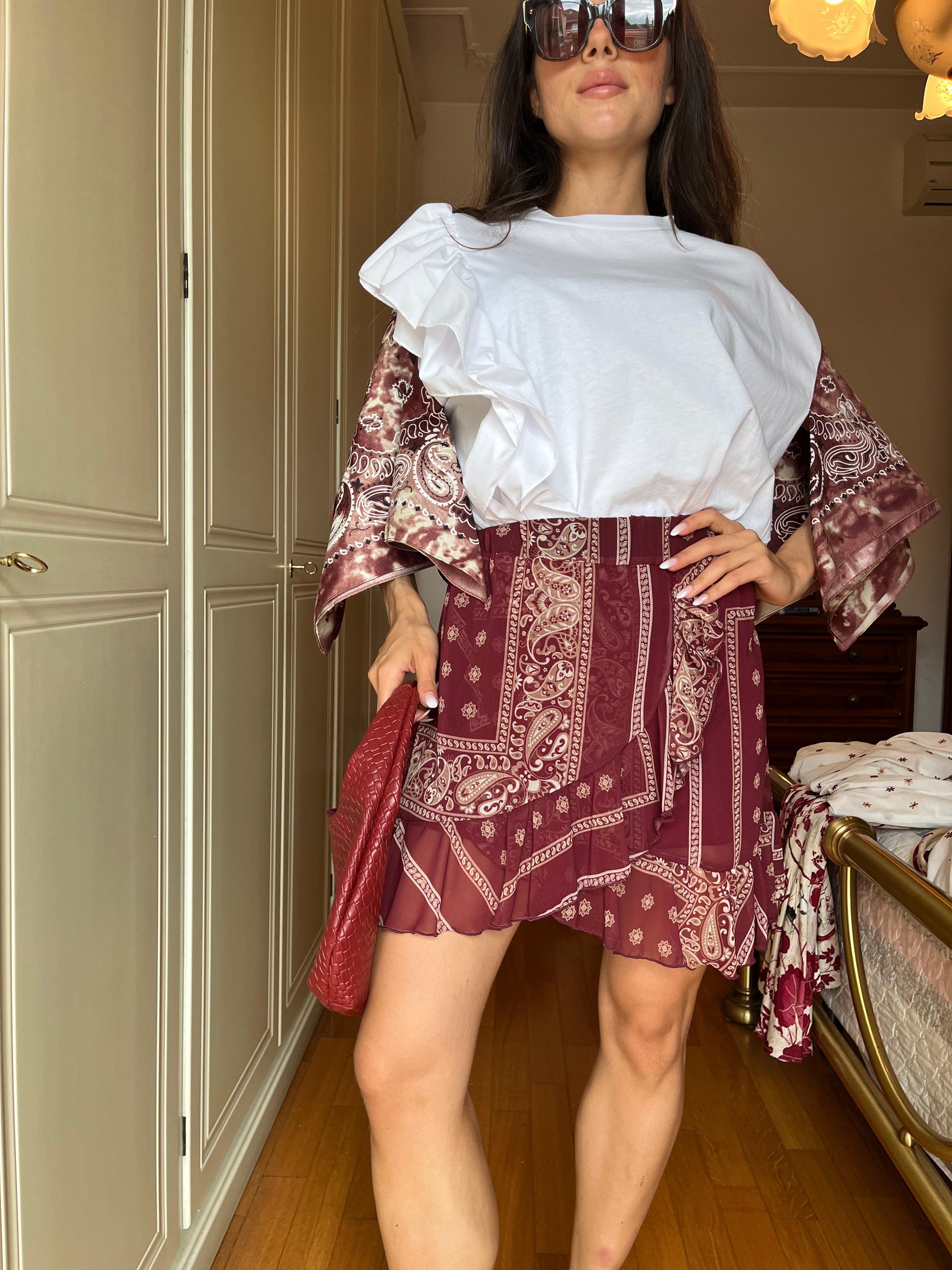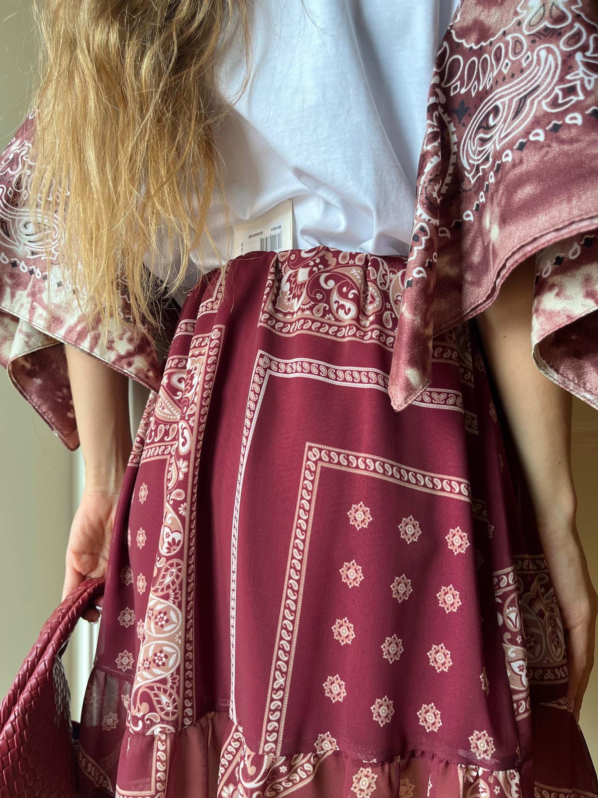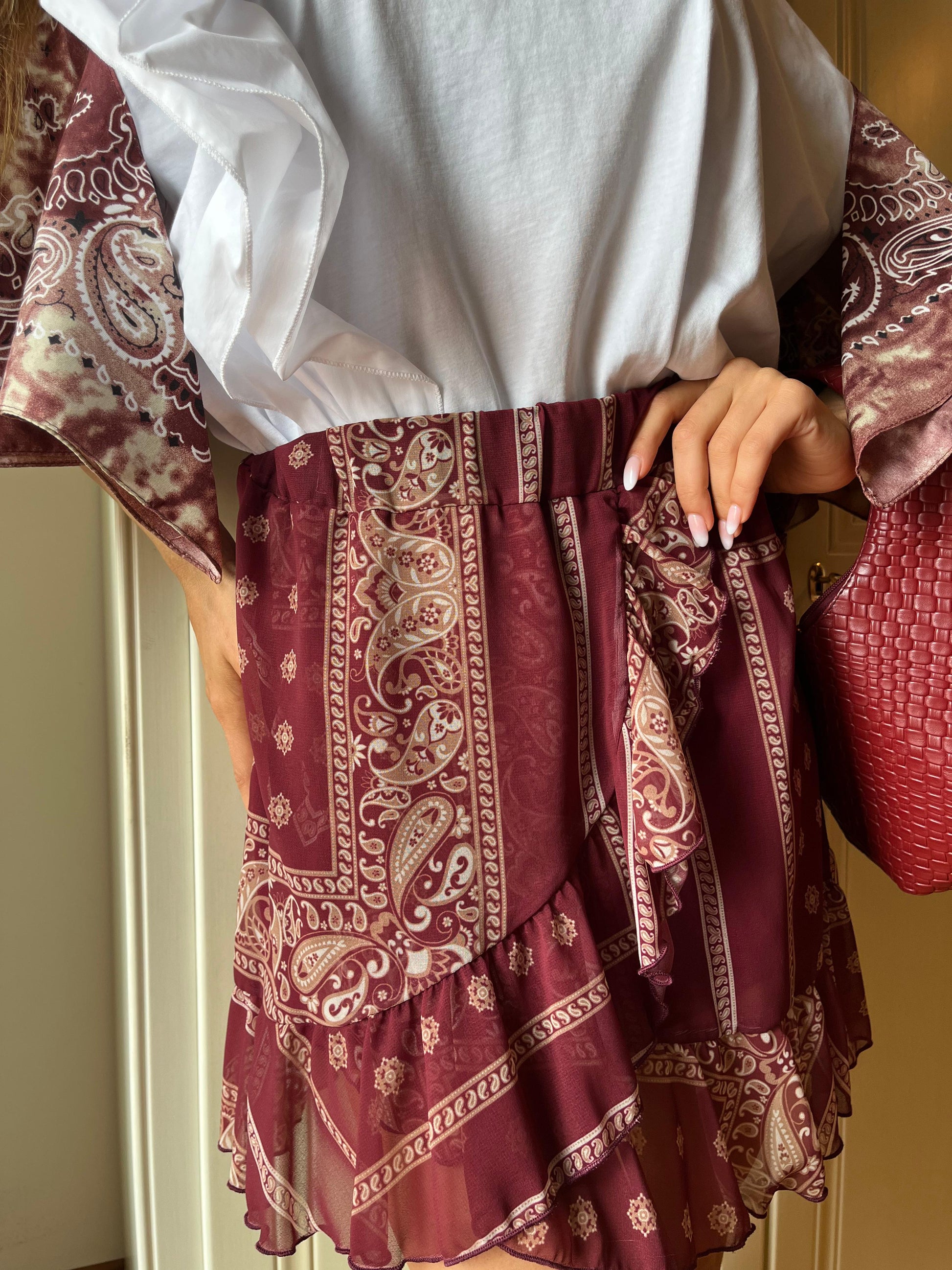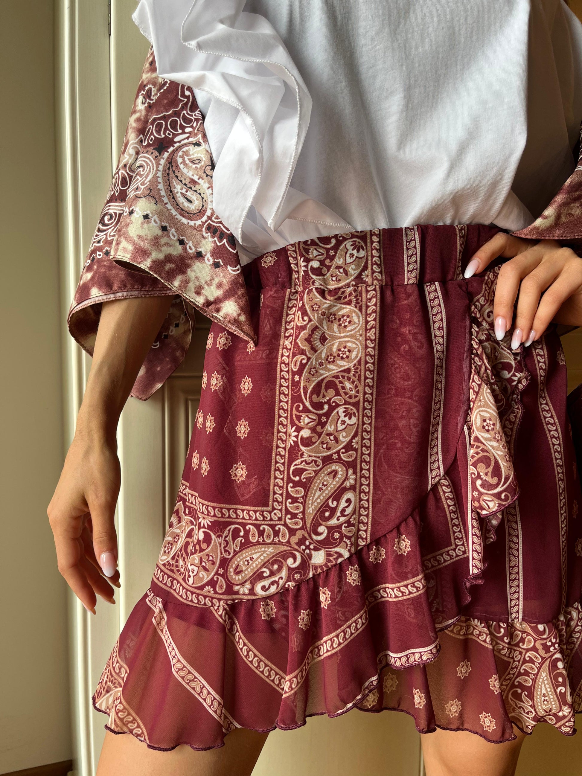 Gonna a portafoglio con disegno bandana. Composizione 100% poliestere