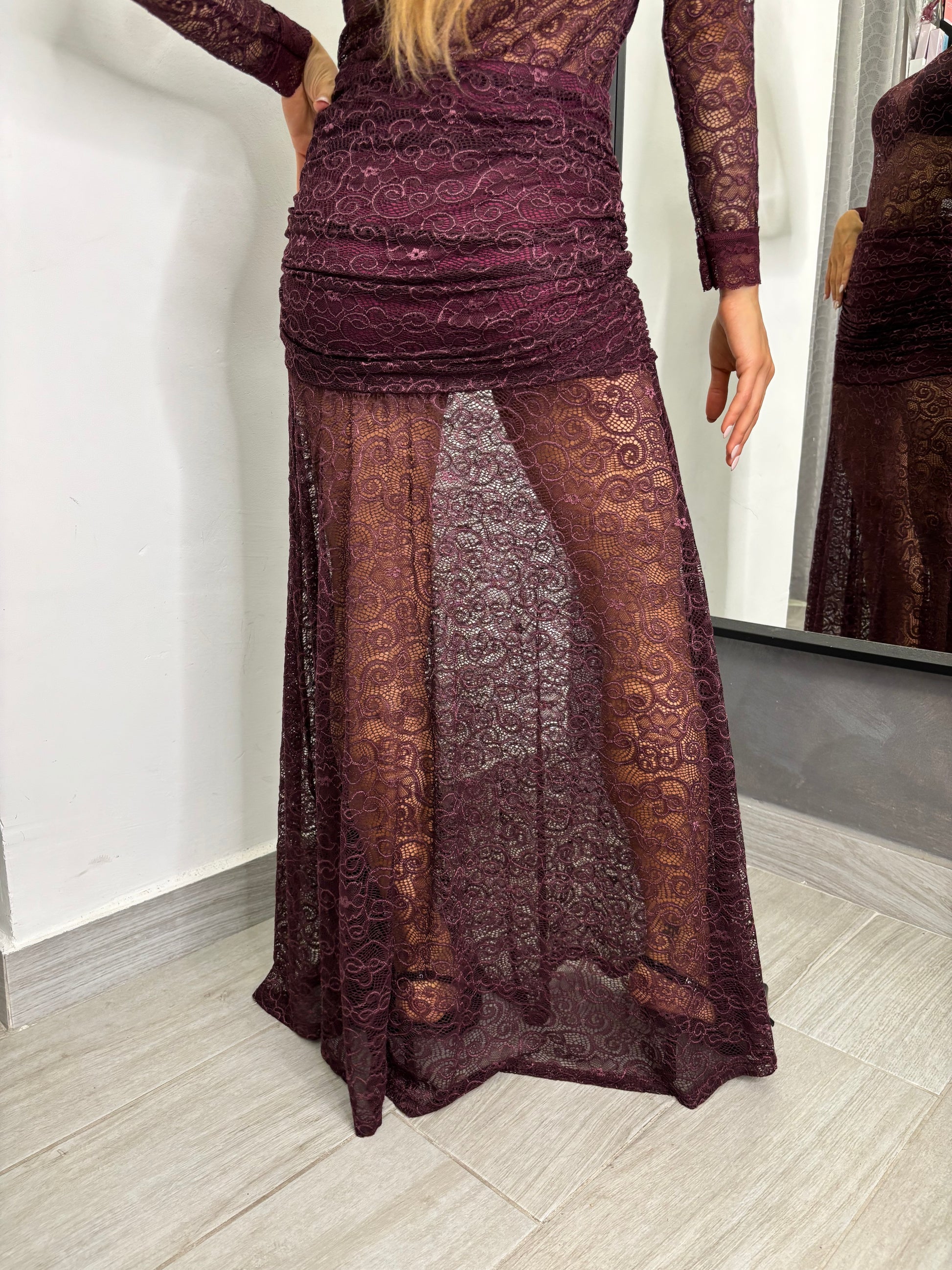 Gonna lunga con fodera, con drappeggio sia sulla parte davanti che dietro.