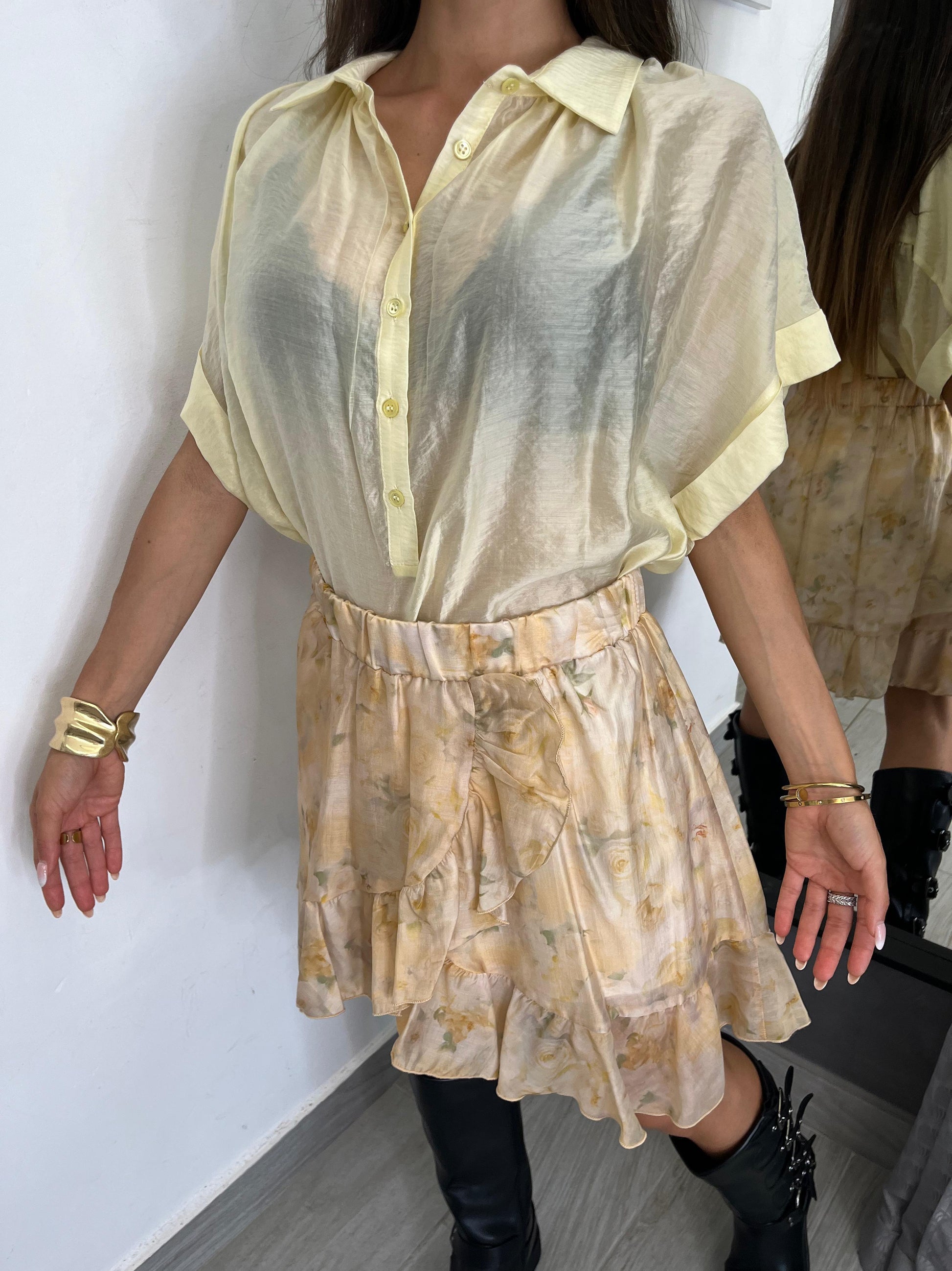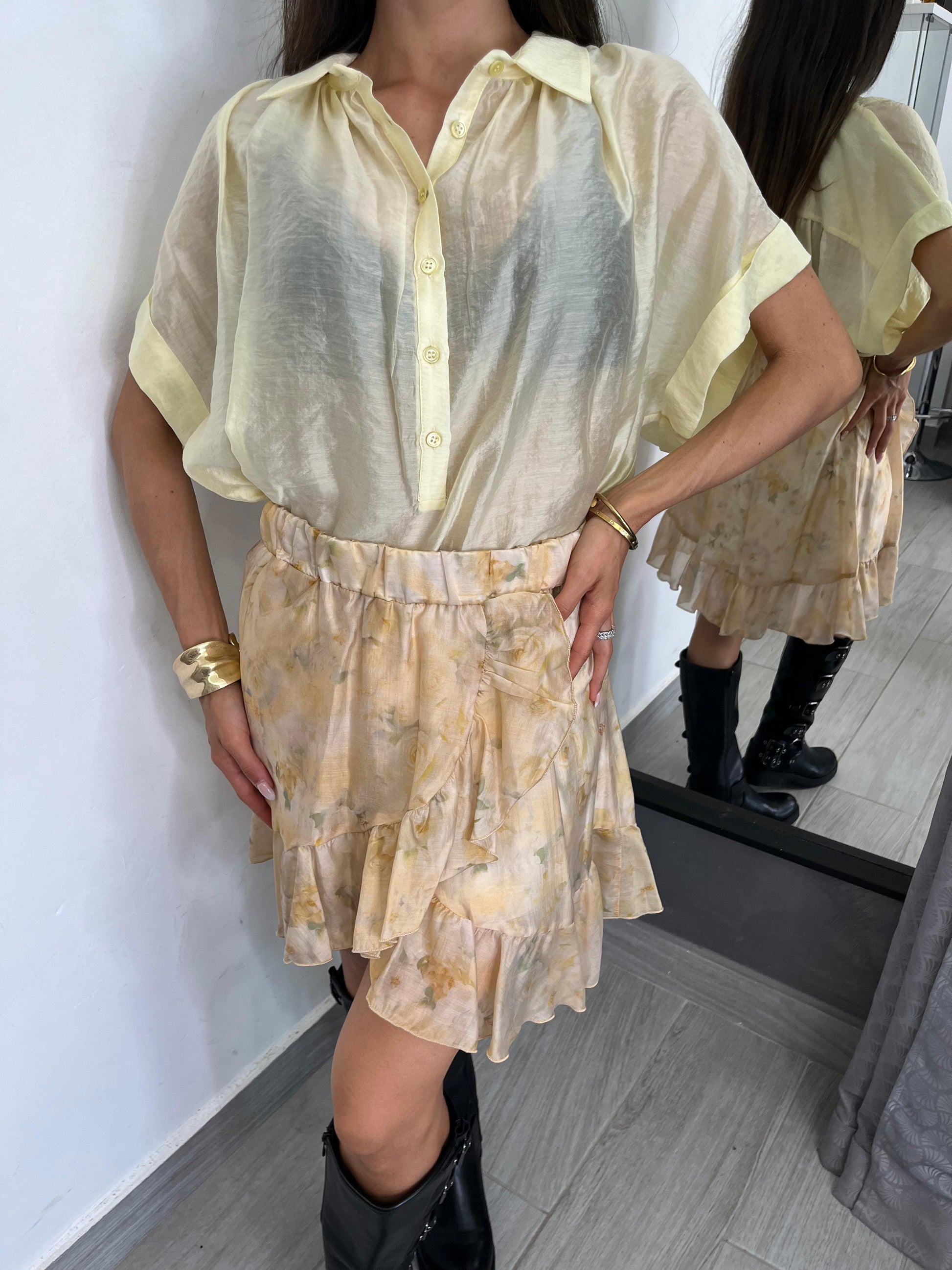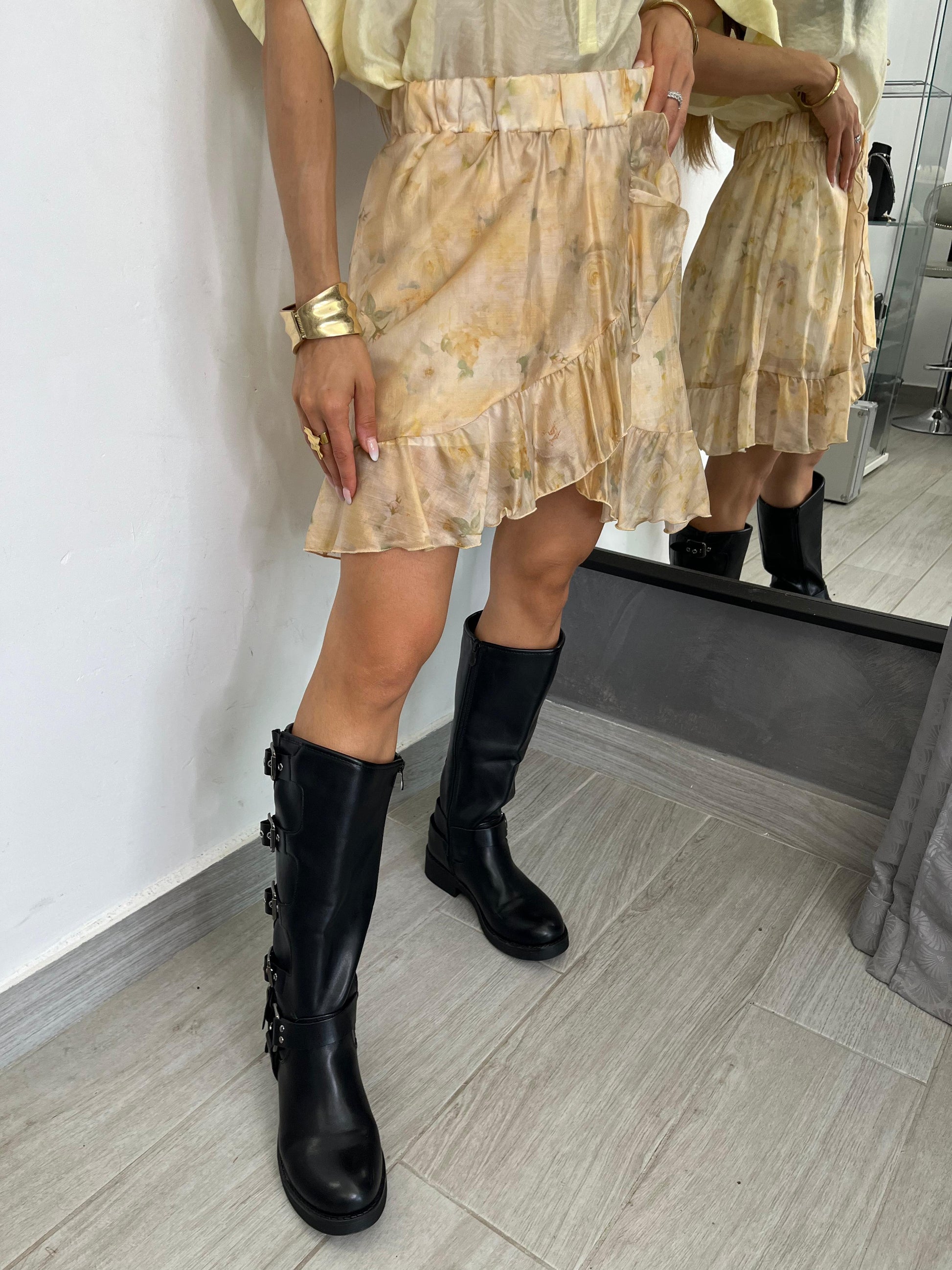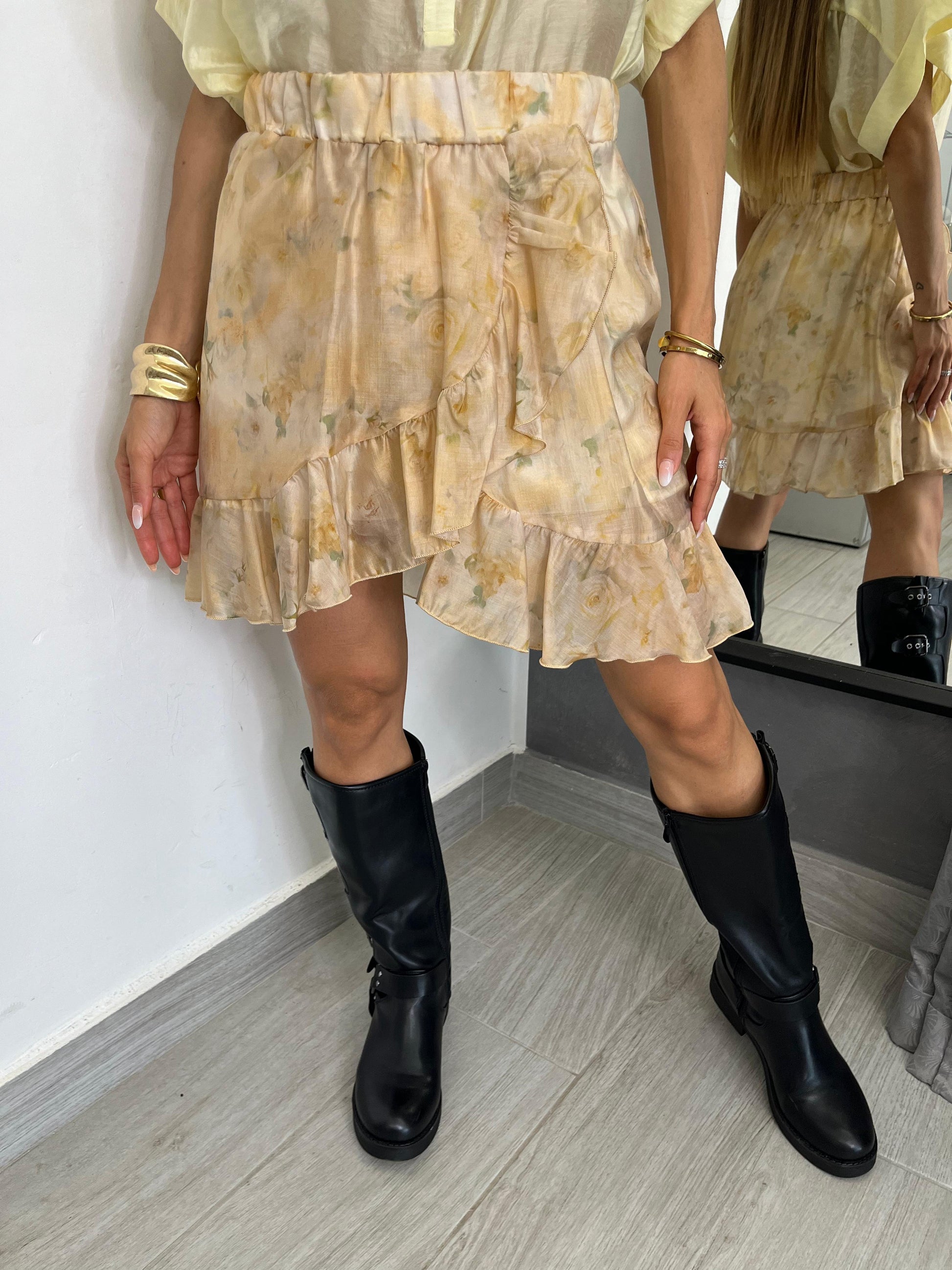 Gonna in tessuto leggero in fantasia modello a portafoglio. Composizione 85% lyocell 15% poliestere