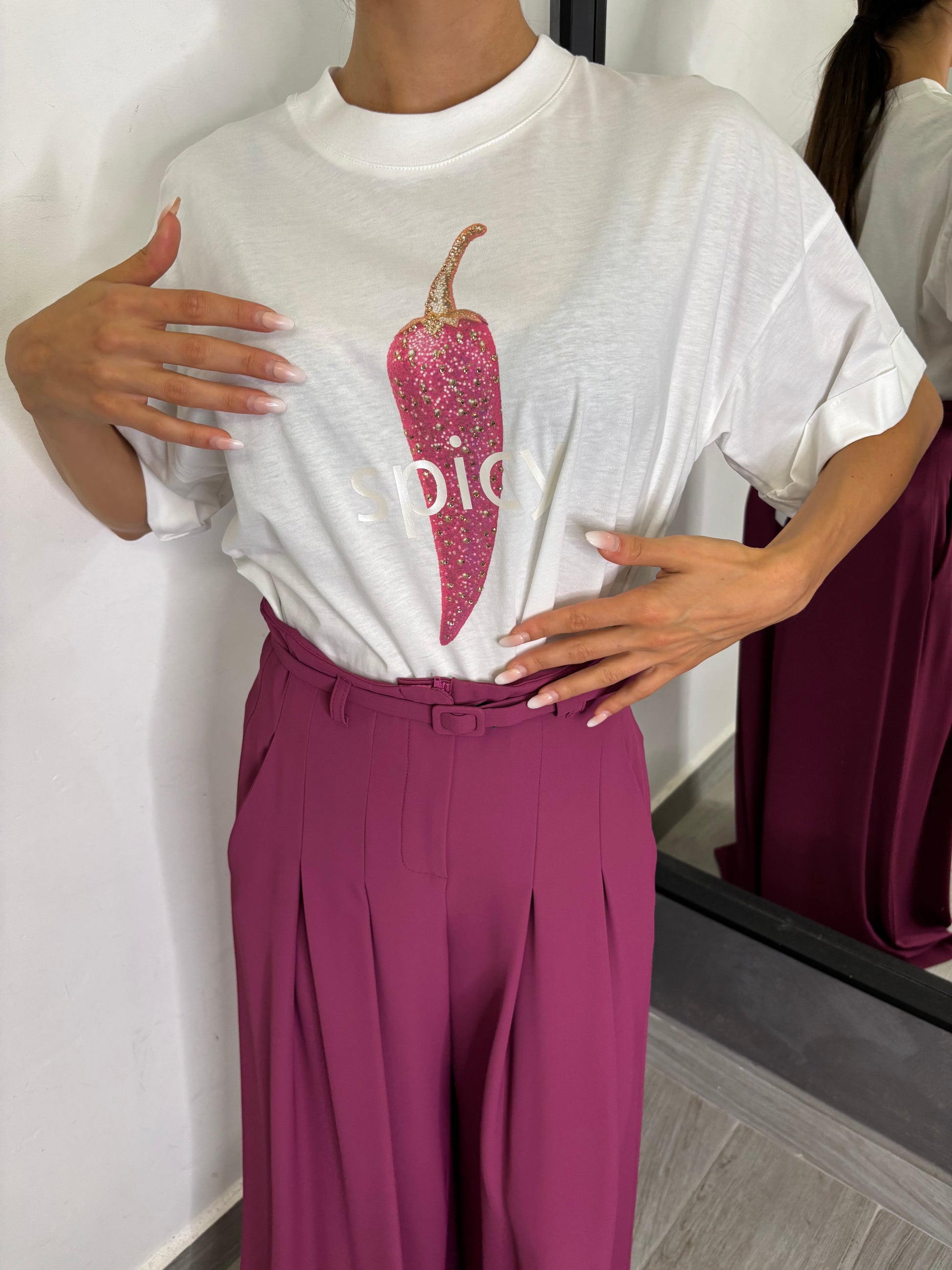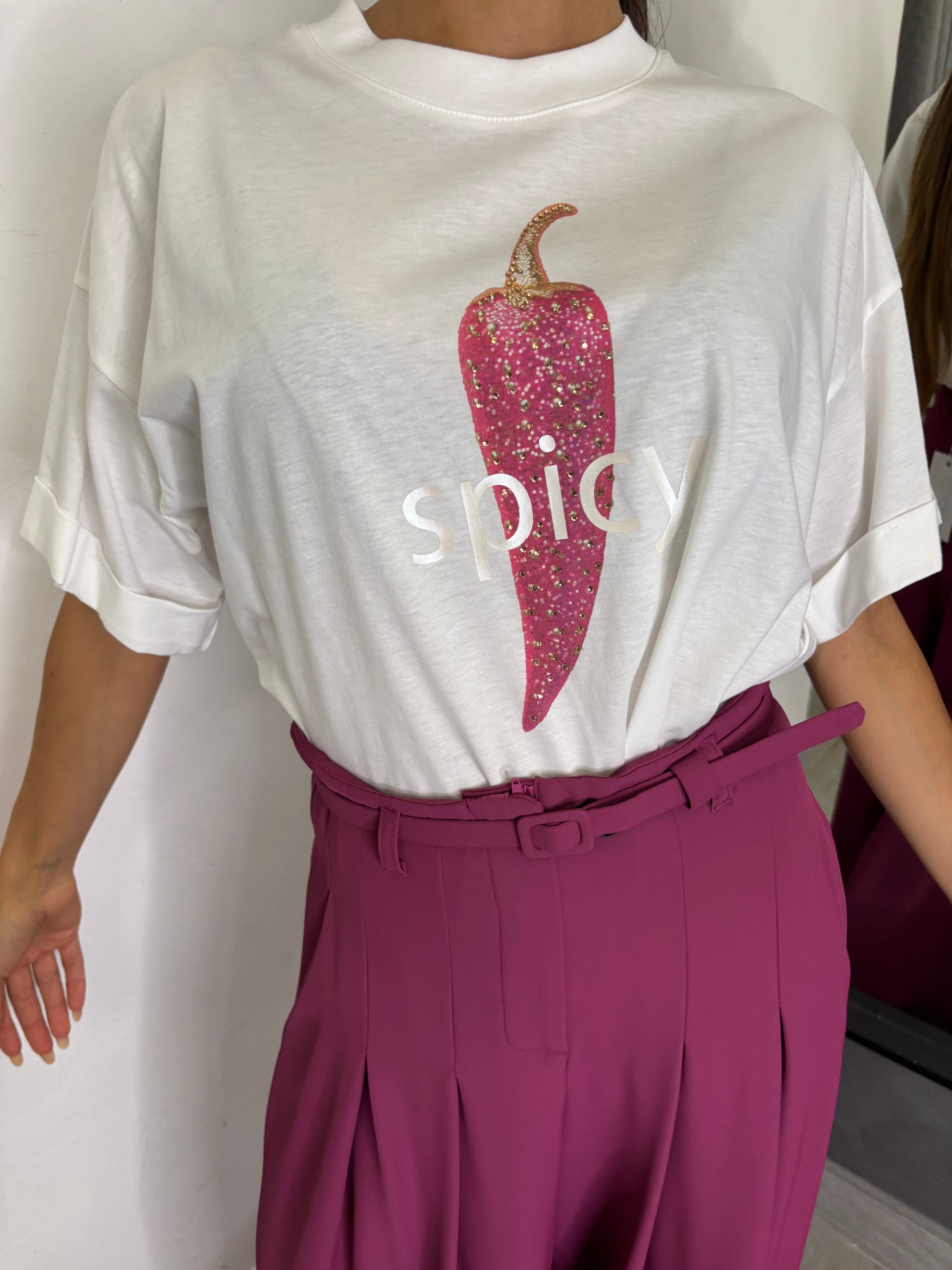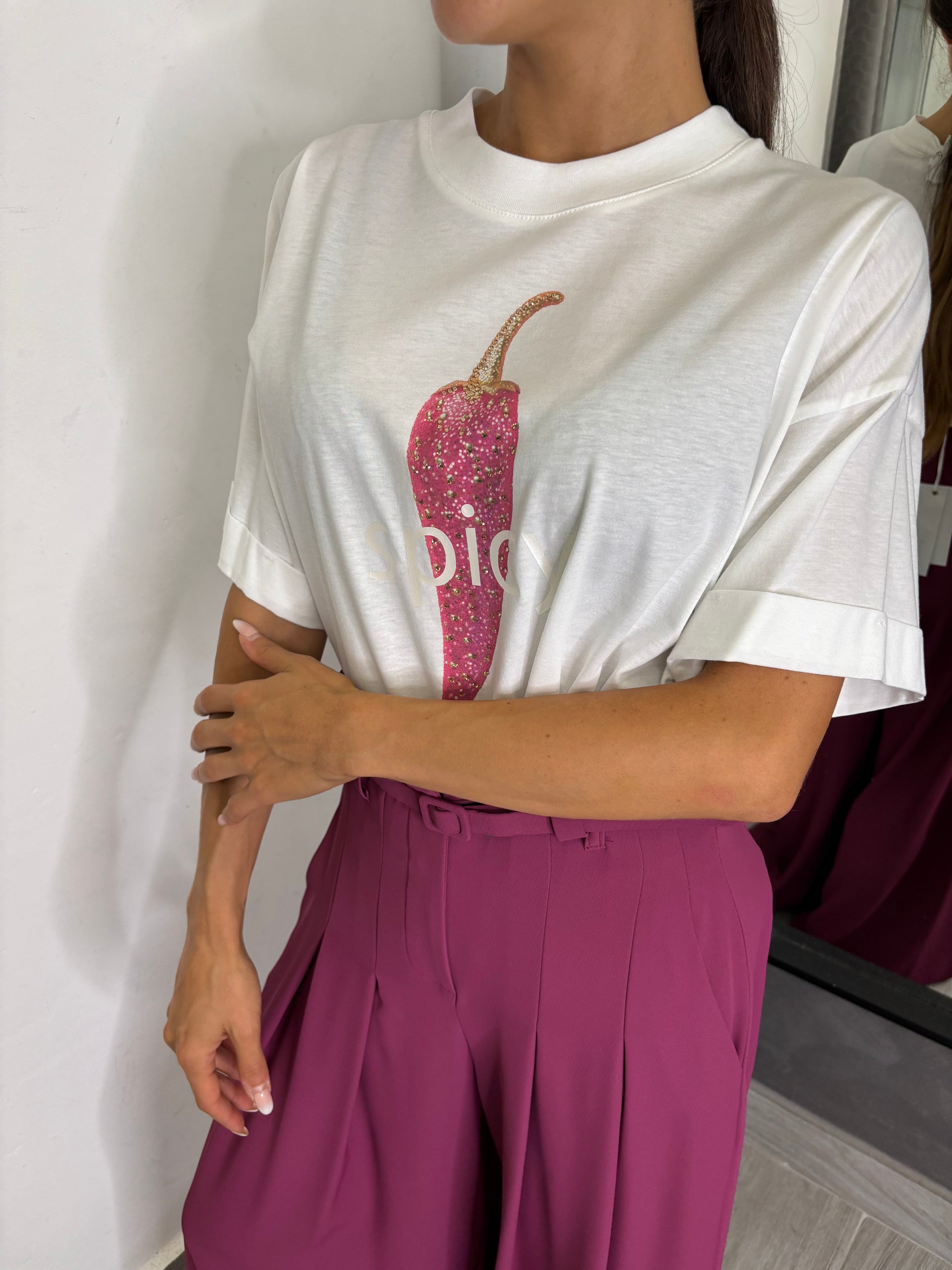 Maglietta in puro cotone, mezza manica con risvolto e giro collo.