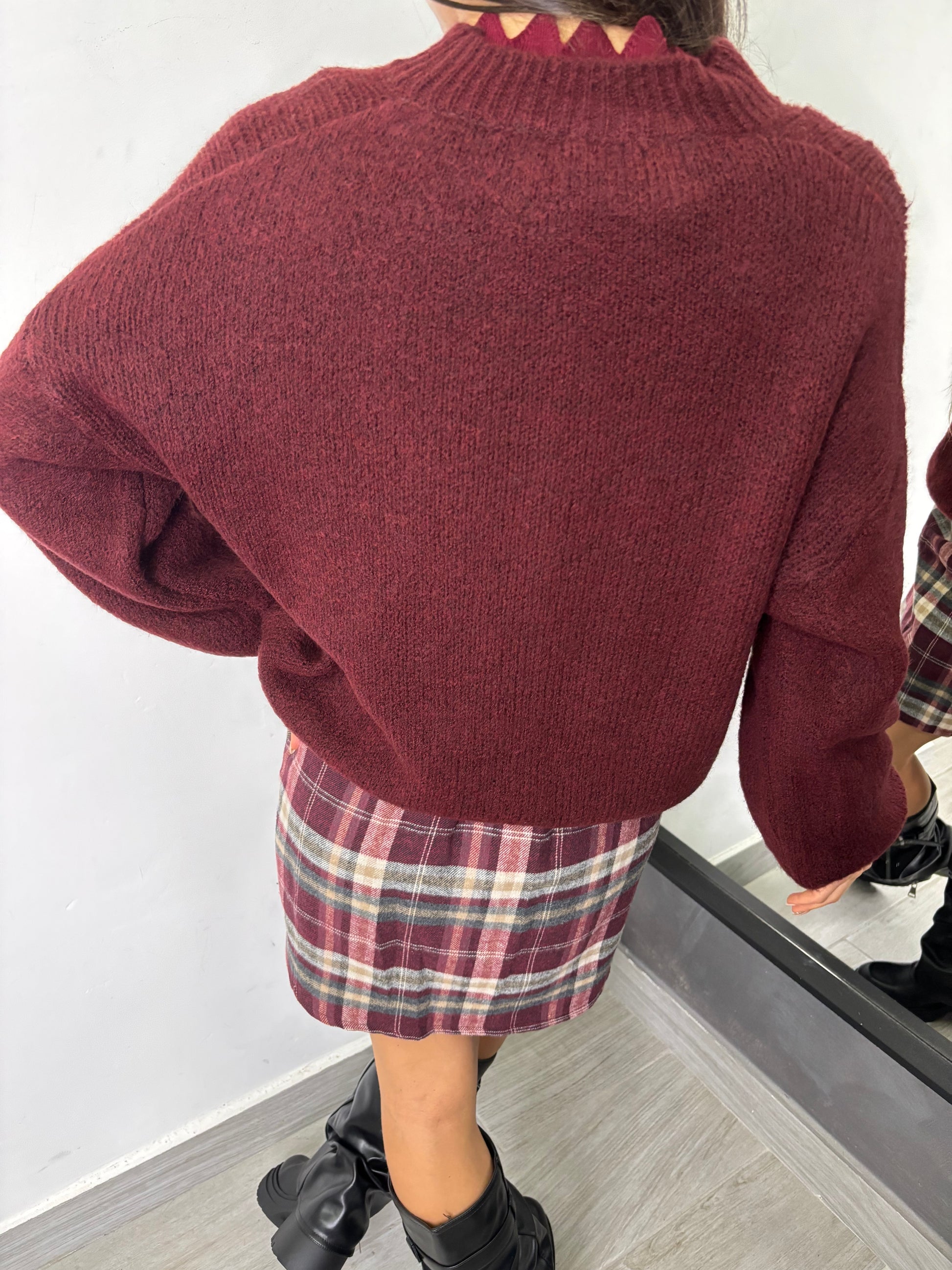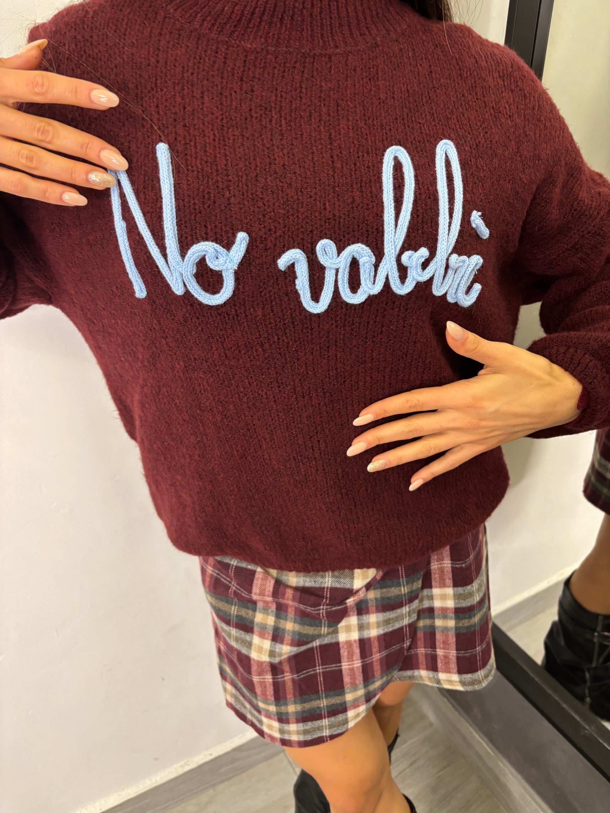 Maglione collo a lupetto, spalla che scende. Scritta davanti.Taglia unica veste fino ad una 46. Composizione 48% acrilico 28% poliestere 10% lana 6% alpaca 6% viscosa 2% elastan.