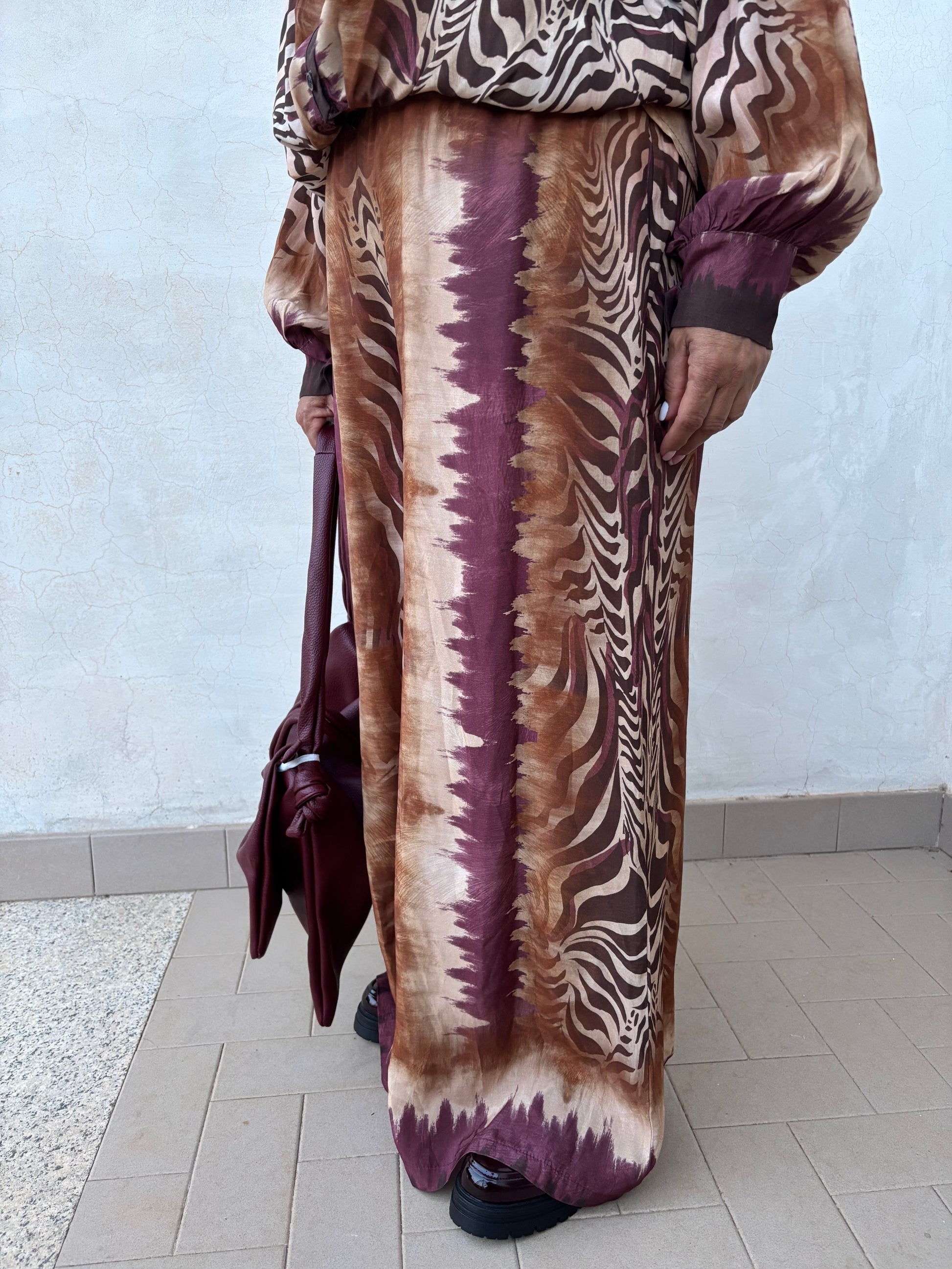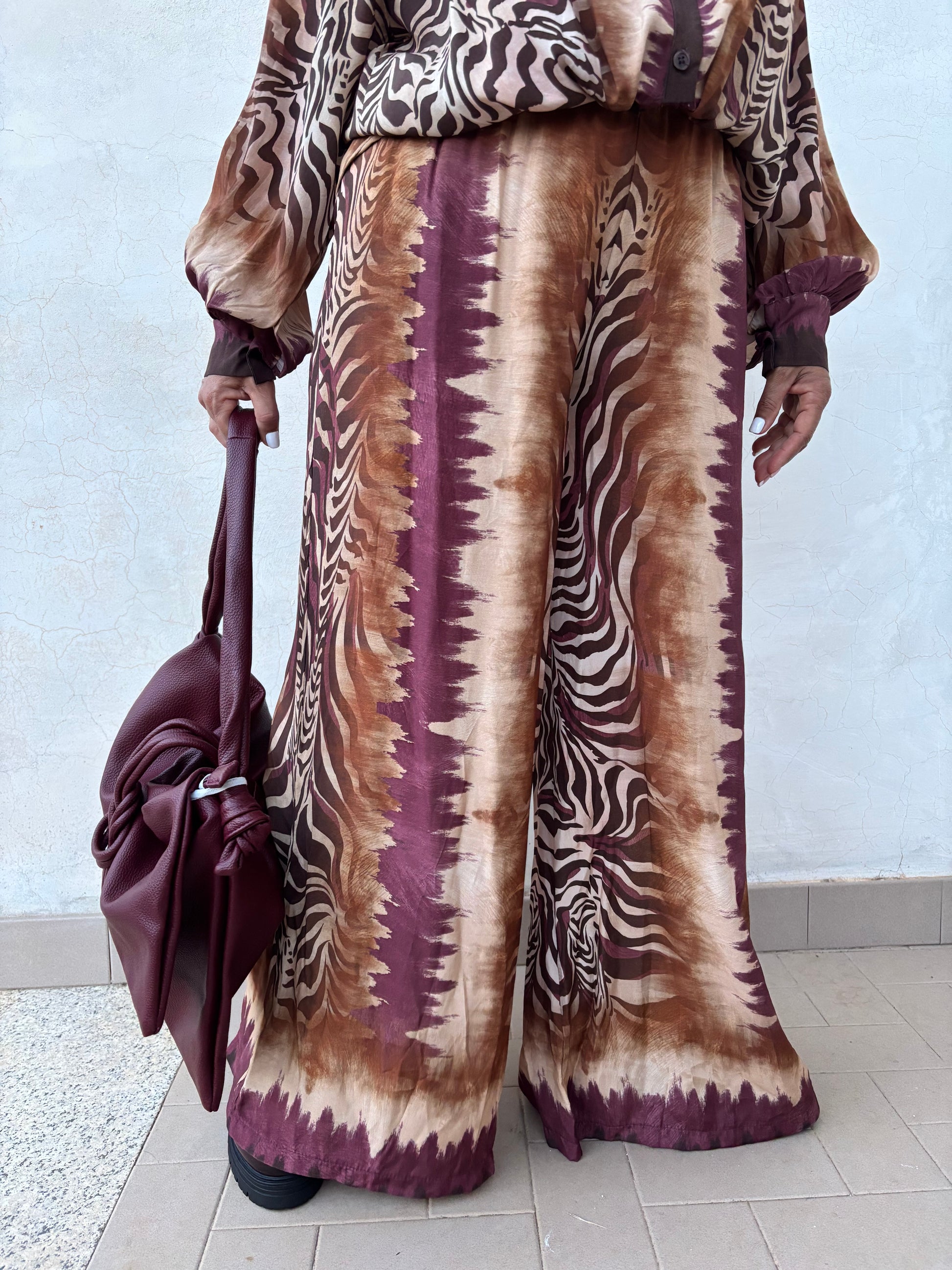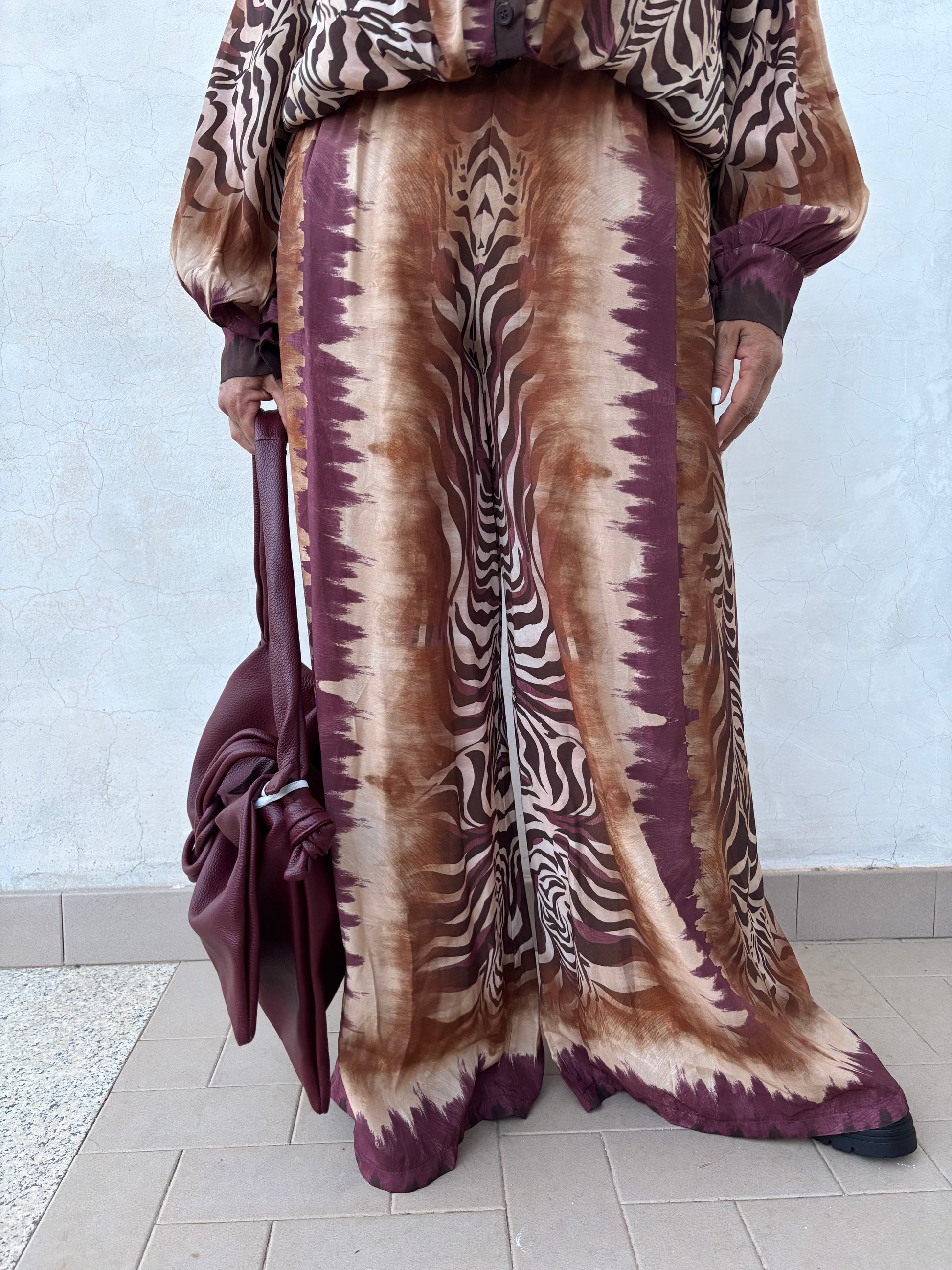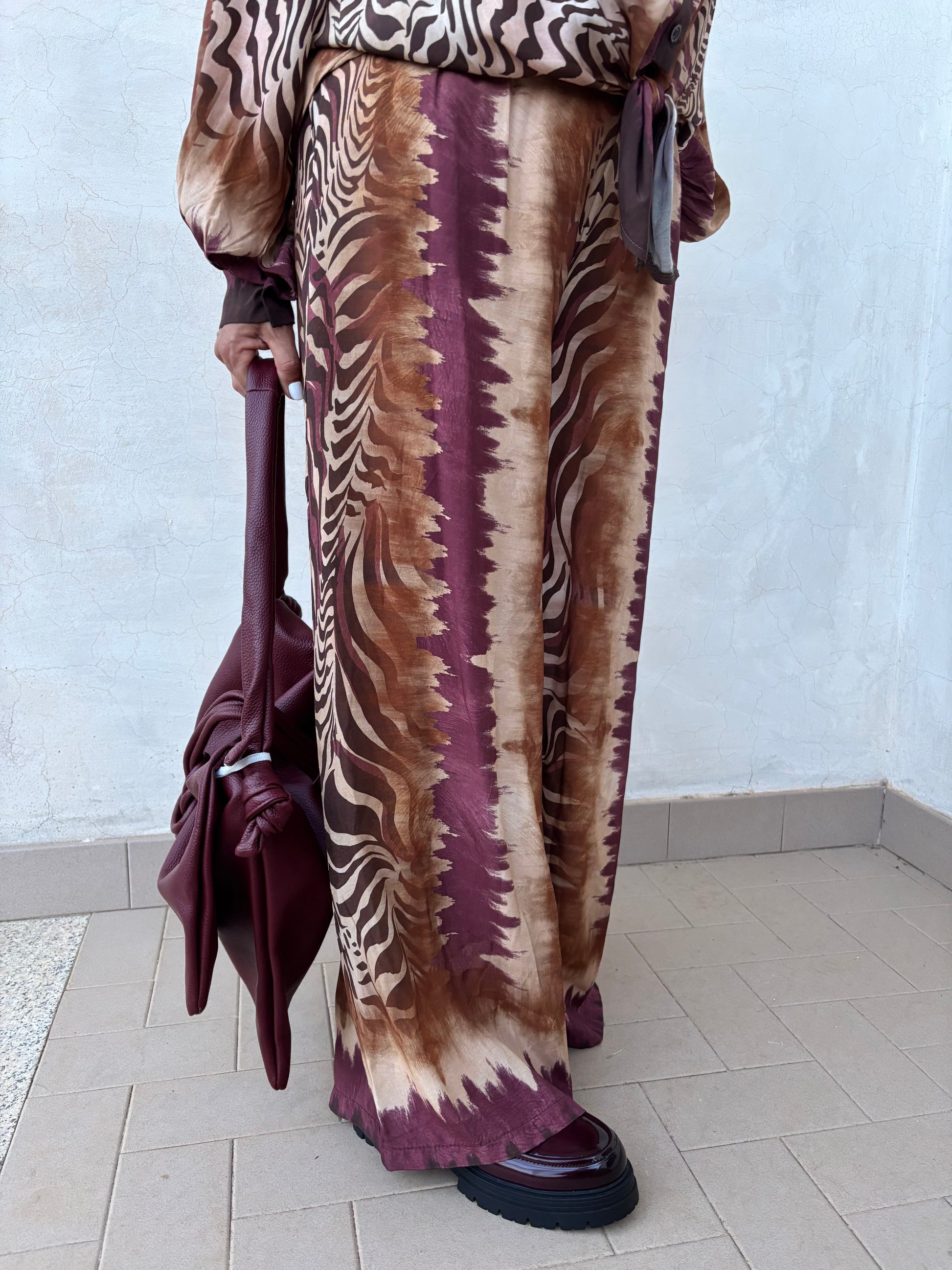 Pantalone gamba larga con elastico in vita e tasche trasversali. Taglia unica veste fino ad una 46. Composizione 100% viscosa