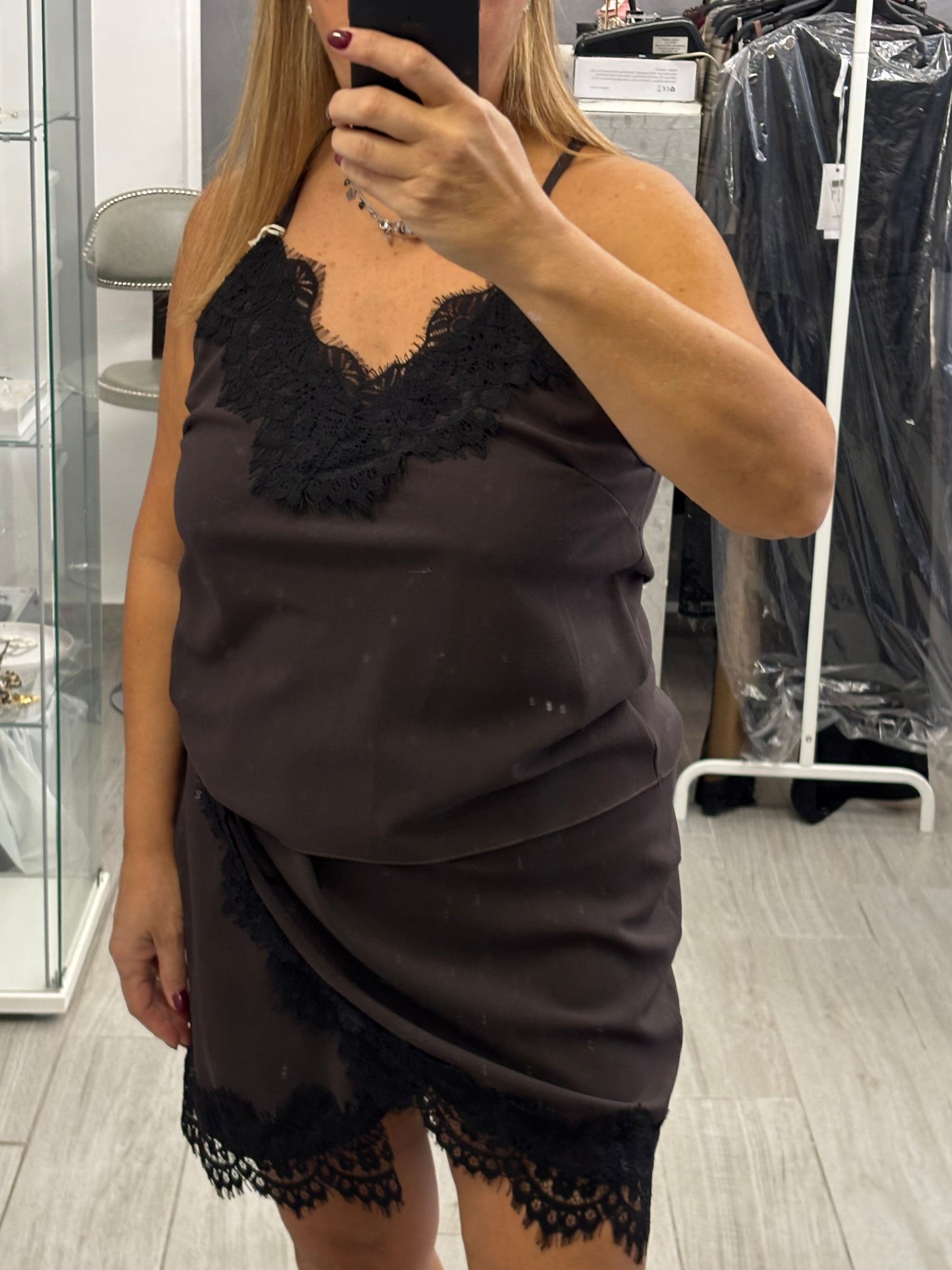 Top con spalline sottili e pizzo applicato sulla parte davanti . Taglia unica veste fino ad una 46